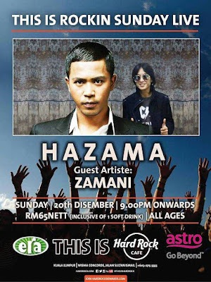 Kuala Lumpur, 20 Disember 2015 – Konsert Hazama The Penglipur Lara Live di Hard Rock Café Kuala Lumpur akan diadakan malam ini, 20 Disember, bermula pukul 9 malam. Persembahan ini turut menampilkan artis jemputan terkenal, Zamani, yang dijangka akan memeriahkan suasana dengan duet menarik bersama Hazama. Tiket untuk acara ini dijual pada harga RM65, yang termasuk satu minuman, dan boleh didapati di pintu masuk kafe.