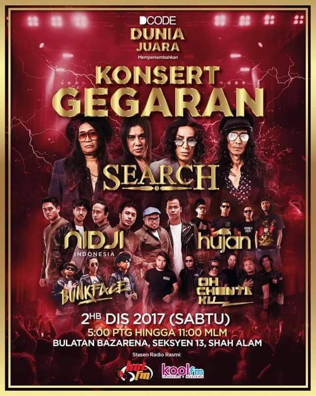 Antara kumpulan rock yang akan menghiburkan penonton adalah Search, Nidji, HUJAN, Bunkface dan Oh Chentaku. Konsert ini dijangka akan menarik lebih daripada 10,000 peminat yang ingin menyaksikan persembahan lagenda rock Search yang jarang beraksi di pentas.