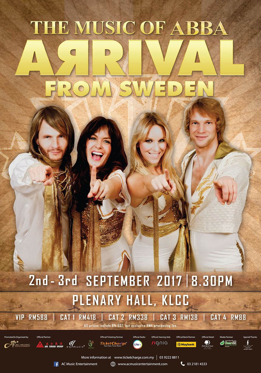 Ticketcharge website : http://www.ticketcharge.com.my/en/current-events/arrival-from-sweden-the-music-of-abba