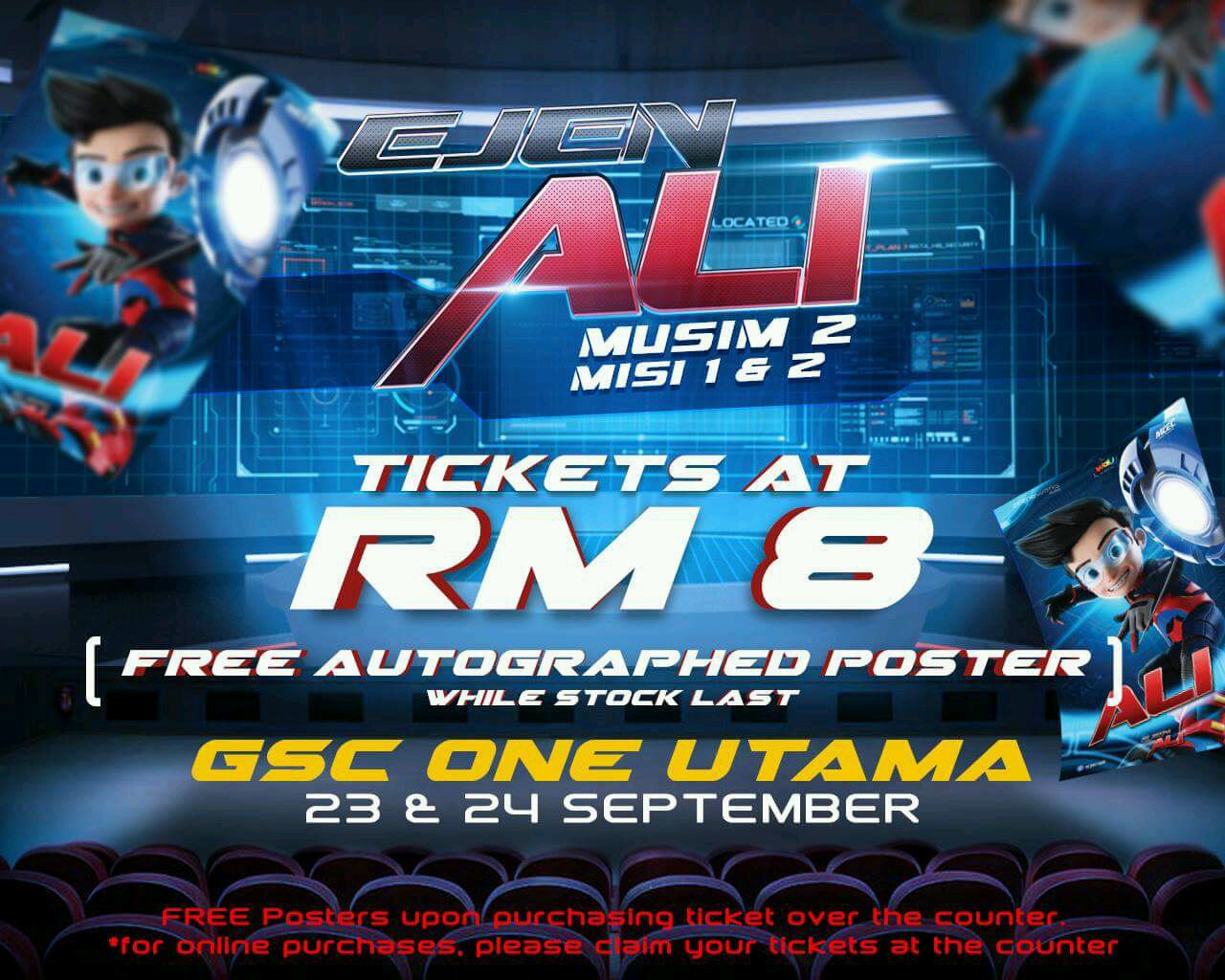 Tayangan ini merupakan pratonton acara Tayangan Awal Eksklusif, khas buat peminat tegar Ejen Ali, yang berpeluang untuk menonton dua (2) episod pertama Ejen Ali Musim 2 secara berturut-turut di panggung wayang. Peminat juga berpeluang untuk bertemu dengan maskot Ejen Ali dan membawa pulang poster yang ditandatangani para pelakon suara secara percuma dengan setiap pembelian tiket, sementara stok masih ada. Tayangan eksklusif ini terhad hanya pada 23 dan 24 September 2017 ini di Golden Screen Cinemas (GSC), 1 Utama Shopping Centre, dimana pembelian tiket boleh dilakukan melalui dalam talian.