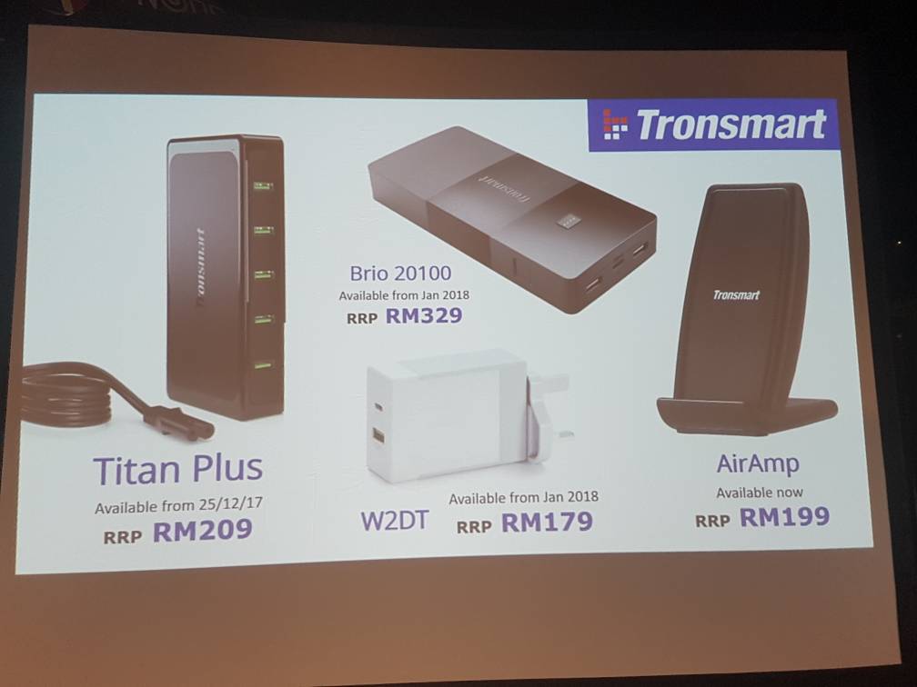 Kuala Lumpur, 18 Disember 2017 – Tronsmart, pengeluar aksesori telefon pintar terkemuka, kini dengan rasminya telah memasuki pasaran Malaysia. Tronsmart memperkenalkan produk-produk terbaru mereka untuk pasaran tempatan: Titan Plus 90W Multi-Port USB Charger, BRIO 20,100 mAh PD Power Bank, AIRAMP Dual Coil Wireless Charger dan W2DT Wall Charger.