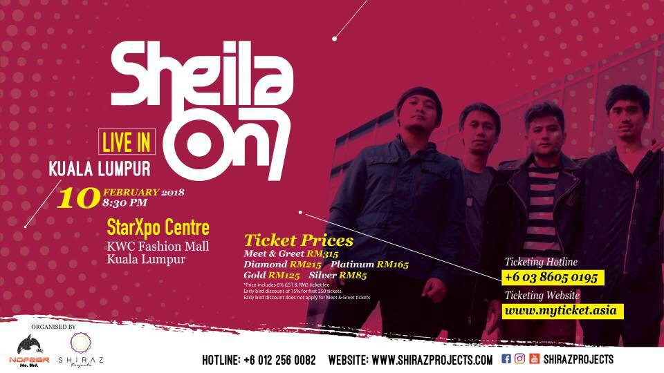 Grup legenda popular lndonesia, Sheila On 7 bakal muncul kembali dalam sebuah konsert yang akan berlangsung di Kuala Lumpur pada Sabtu, 10 Februari 2018 di StarXpo Hall, KWC Fashion Mall, Kuala Lumpur bermula 8.30 malam.