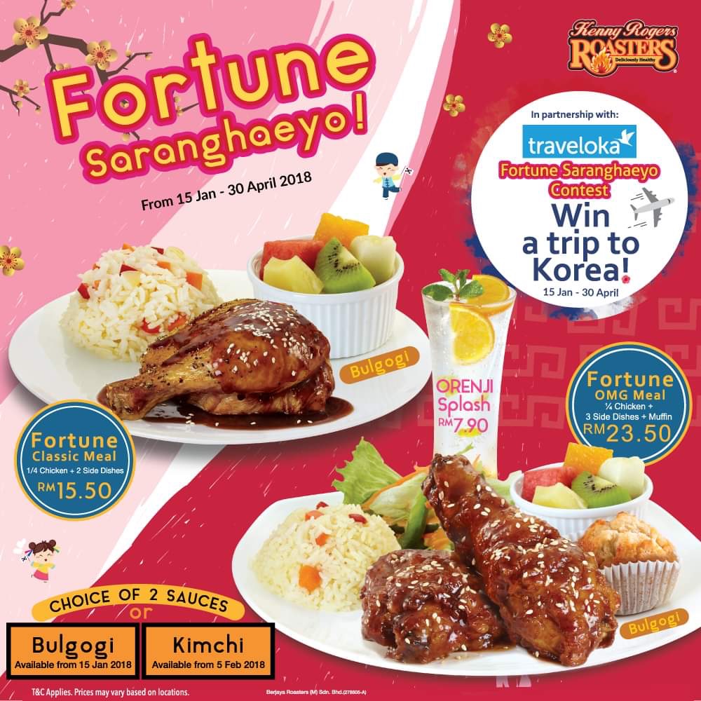 With the exciting combination of KRR’s rotisserie chicken with a choice of Bulgogi sauce, a wildly popular sauce traditionally used for grilling beef, or Kimchi*sauce, a sourish spicy chilli red sauce inspired by the Korean staple, the Fortune Chicken Meals are made available in a variety of meal options from RM 15.50 onwards as follows: