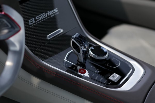Merino leather in Dark Brown and Fjord White lends the interior a high-quality ambience. Accent surfaces in carbon fibre and hand-polished aluminium create deliberate contrast and radiate a sporty and technical feel. Top that with a faceted ground gearshift lever and the iDrive Controller made from Swarovski glass with smoky quarts, and you get a classy finishing touches.