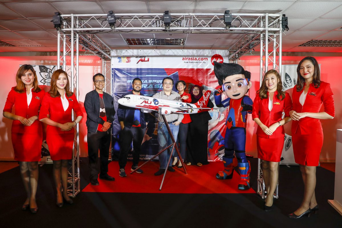 BANGSAR, 22 Mac 2018 – Ejen Ali dan AirAsia melancarkan Jet Perisik MATA atau MATA Spy Jet, sebuah pesawat Airbus A320 AirAsia yang dihiasi ‘livery’ reka bentuk Ejen Ali di sebuah sidang media yang berlangsung hari ini. Pelancaran tersebut merupakan acara kemuncak kempen #MisiAspirasiAirAsia, sebuah kerjasama antara Ejen Ali dan AirAsia yang mendukung empat nilai murni – beraspirasi tinggi, mesra, bijak berbelanja dan baik hati, dan bertujuan memberi inspirasi dan mencorak sifat-sifat kepimpinan dalam diri kanak-kanak hari ini sebagai bakal pemimpin masa hadapan.