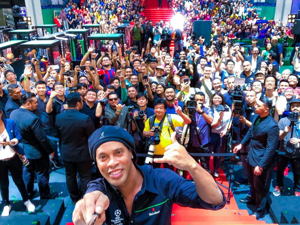 UEFA Champions League legend Ronaldinho arrives for the UEFA Champions League Trophy Tour presented by Heineken® in Malaysia.