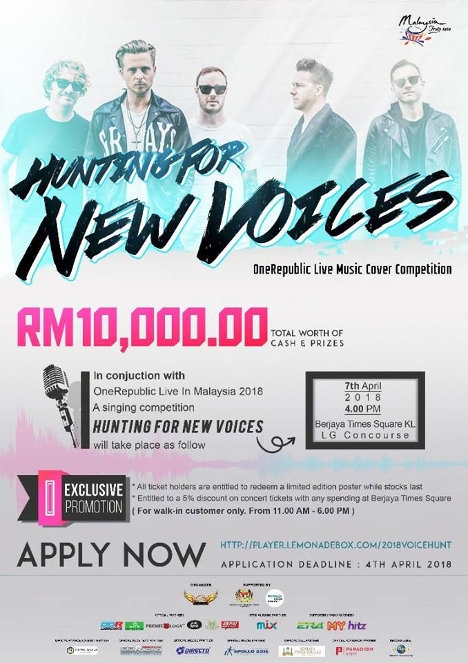 KUALA LUMPUR 7 April 2018 – PENCARIAN BAKAT BAHARU merupakan satu pertandingan nyanyian yang diadakan oleh penganjur WGW Entertainment, sempena konsert OneRepublic Live in Malaysia 2018.