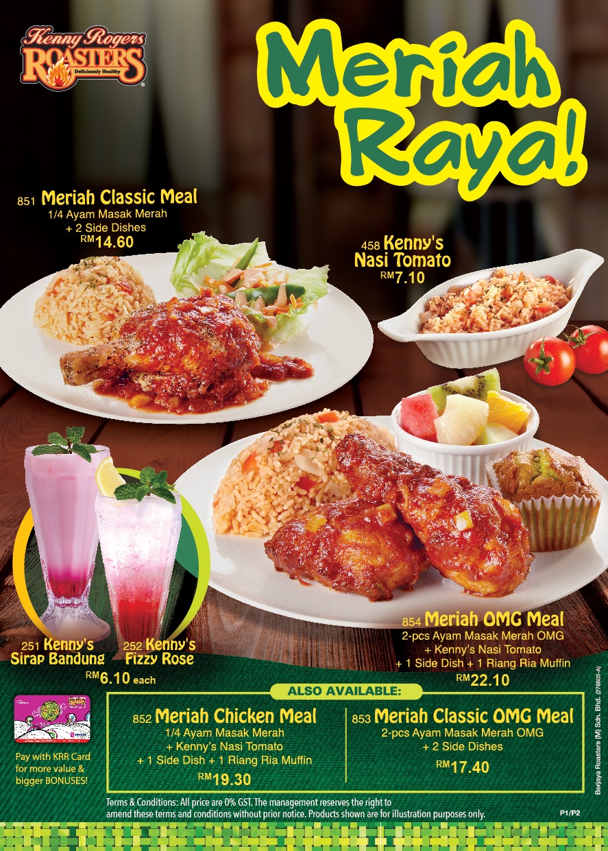 A classic yet unique twist to its latest offerings, KRR has infused the traditional ayam masak merah, dish with a host of flavourful spices and refreshing tomatoes, giving the chicken a tangy yet robust and spicy zest to keep guests coming back for more. On the other hand, Kenny’s Nasi Tomato is cooked with tomatoes and local spices to delight the most discerning palate. The Meriah Raya meals are made available in a variety of meal options from RM 15.50 onwards as follows: