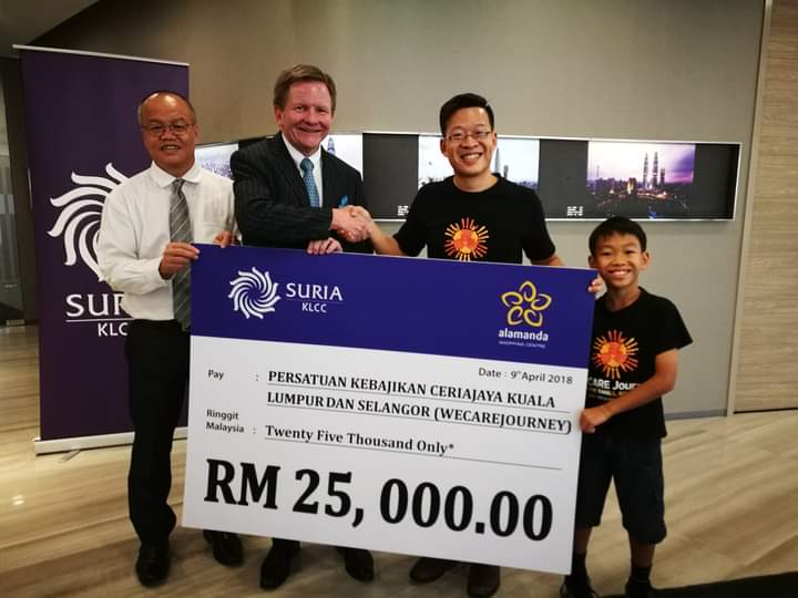 Kuala Lumpur, 7 May 2018 – Suria KLCC Sdn Bhd hari ini mengumumkan bahawa pusat membeli belah berprestij tersebut telah berjaya mengumpul dana lebih RM25,000 melalui kempen “Share The Care”, bertujuan untuk meningkatkan kesedaran masyarakat tentang Spinal Mascular Antrophy (SMA). Dana tersebut dikumpul semasa perayaan Krimas pada bulan Disember 2017 dan sambutan Tahun Baru Cina pada awal tahun ini.