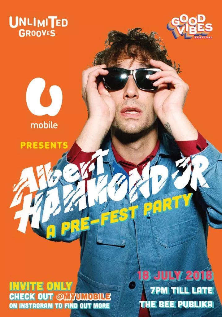 KUALA LUMPUR, 21 JUNE 2018 – U Mobile’s pre-Good Vibes Festival party on 18 July 2018 will feature Albert Hammond Jr, who is performing for the first time in Malaysia at The Bee, Publika. This party is only open to U Mobile customers and their invited guests.