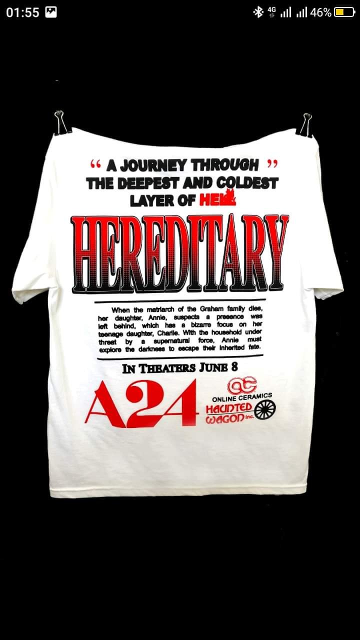 Berbanding dengan kes tshirt ‘copy’ Masdo yang panas semalam, yang ini OK sikit. Mereka tau yang mereka buat tshirt bootlegs, tapi sebab dah suka sangat dengan filem HEREDITARY keluaran studio A24 (kini di pawagam edaran GSCMOVIES), Alix Ross dan Elijah Funk mengambil inisiatif dengan menghubungi pihak A24 tentang gagasan tshirt HEREDITARY yang dicadangkan mereka sebab A24 tak buat sebarang merchandise rasmi pun, and walah! You got these tshirts!