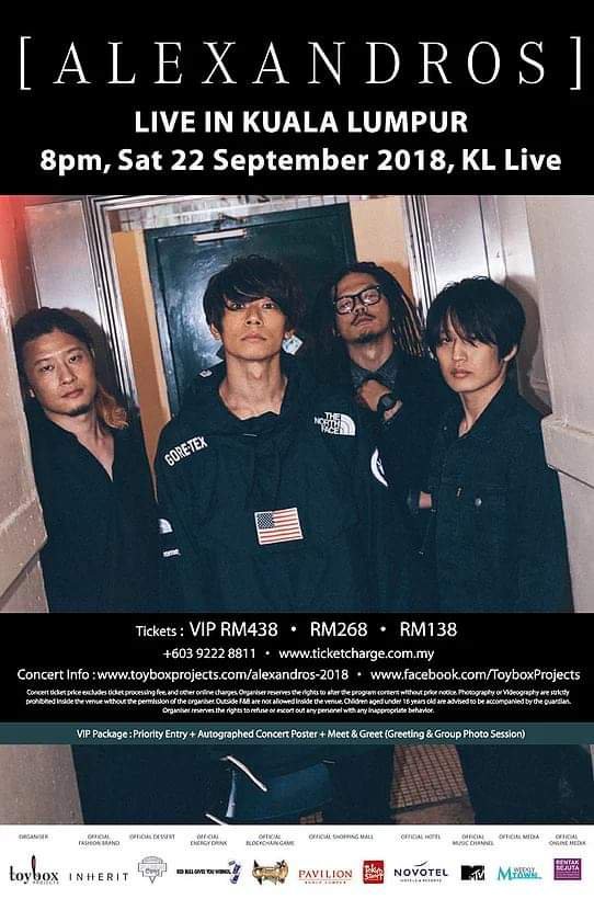 Band rock dari negara Matahari Terbit, [ALEXANDROS] bakal membuat persembahan sulung mereka di Kuala Lumpur pada 22 September ini di KL LIVE! Mereka juga baru saja menerbitkan lagu tema untuk filem live action adaptasi manga ‘BLEACH’ yang kini sedang ditayangkan di saluran Netflix! Konsert ini dibawakan oleh Toybox Projects.