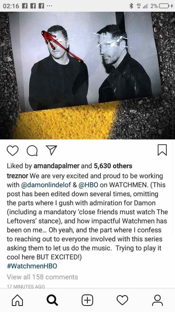 21 September 2018 – Pengasas band industrial rock Nine Inch Nails dan penerima anugerah Oscars, Trent Reznor tidak dapat menyembunyikan rasa terujanya ketika menyampaikan berita ini. Ianya juga satu deja vu bila Trent dan penulis skrip, Damon Lindelof (showrunner siri tv Lost dan The Leftovers) sama-sama mencanangkan kepada HBO yang Trent ialah orang yang sesuai untuk mengemudi skor untuk siri TV Watchmen, adaptasi novel grafik ikonik tentang kejatuhan adiwira tulisan Alan Moore yang sehingga ke hari ini masih membingungkan peminat karya superhero yang kasual. Terdahulu, Watchmen pernah diangkat ke layar perak pada tahun 2009 di bawah arahan Zack Snyder.