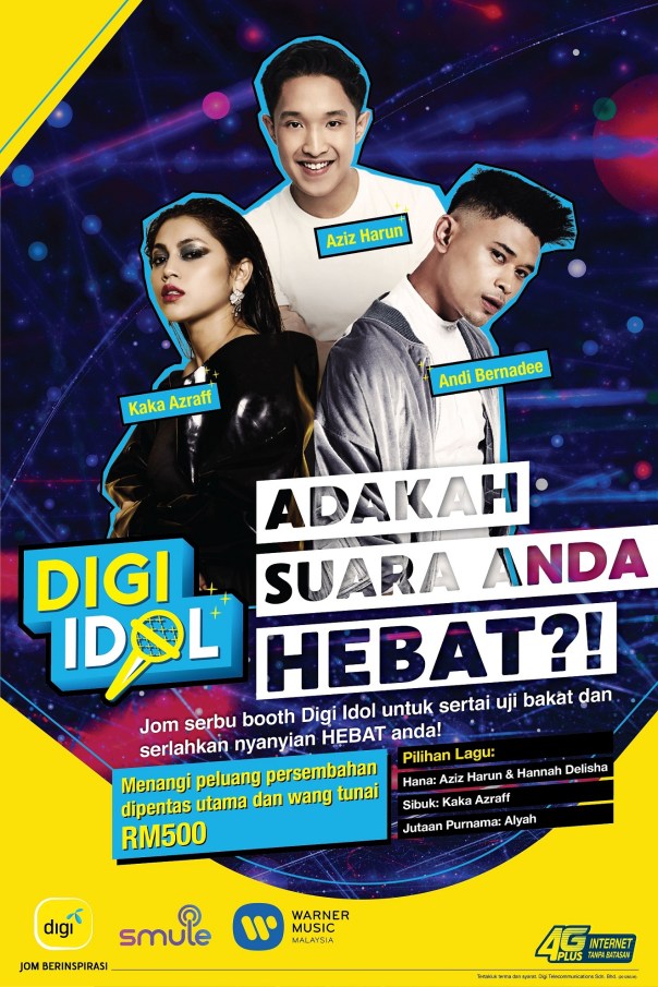 Pengemar music boleh menyertai acara Digi Idol dan berpeluang untuk memenangi hadiah yang menarik