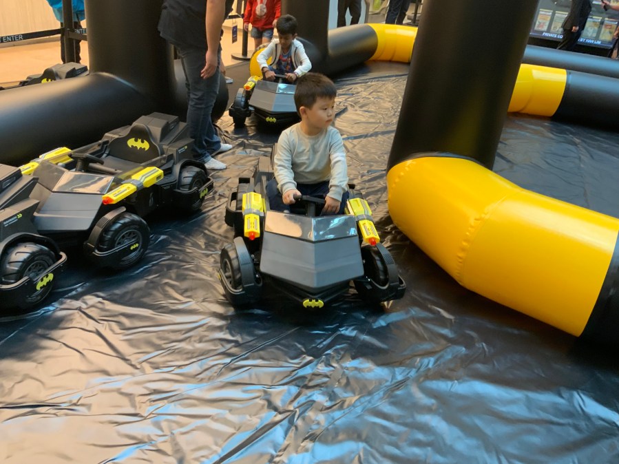 – Children can also join in the fun with a mini Batmobile racing track.