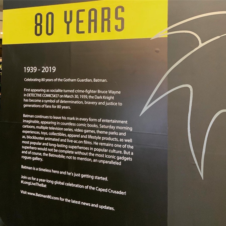– A section of the event, located at SkyAtrium, is devoted to panel displays of Batman’s key milestones, illustrating the development and history of Batman from 1939 to 2019.