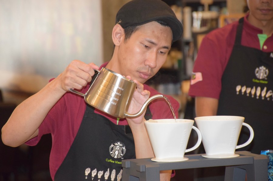 Leaning into growth opportunities at Starbucks, the Advanced Coffee Masters Program teaches qualified baristas new coffee mastery skills for different coffee equipment. Thus, the newly-certified Deaf Advanced Coffee Masters are able to brew coffee using the Pour Over method. In addition, these Deaf baristas are also qualified to conduct coffee chat sessions with the public using sign language much like the baristas at the Starbucks Reserve™ stores in Malaysia. Throughout these three years, the Starbucks Signing Store advocates continuous learning and development of each barista.
