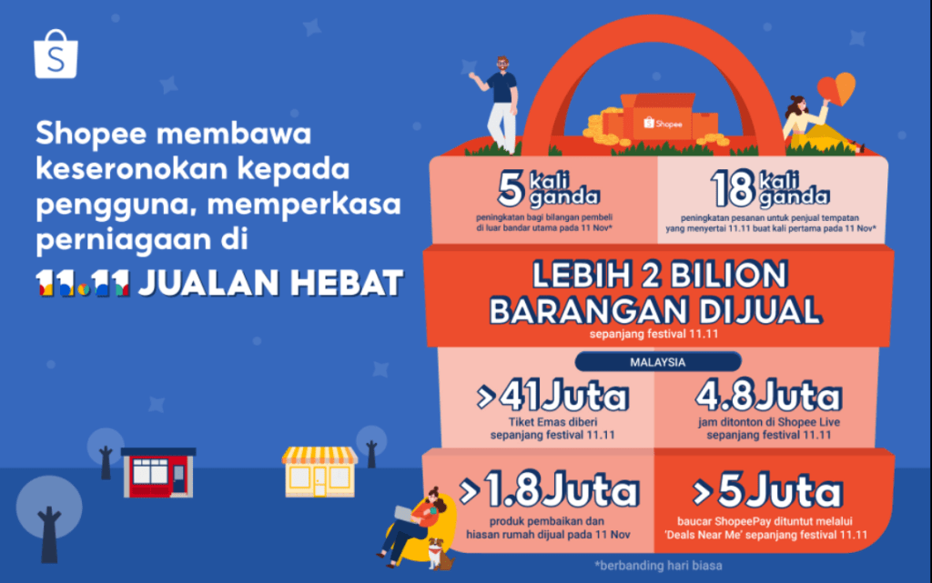 Bagi perniagaan-perniagaan di rantau ini, 11.11 Jualan Hebat merupakan batu loncatan untuk mendorong pertumbuhan dan pemulihan. Penjual-penjual tempatan mendapat manfaat daripada lonjakan dalam aktiviti membeli-belah, dengan mereka yang menyertai 11.11 buat kali pertama menyaksikan pesanan mereka pada 11 November melonjak 18 kali ganda berbanding hari biasa.