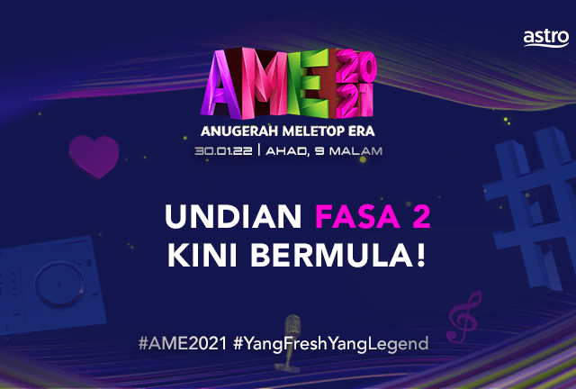 Dengan mengangkat tema Yang Fresh, Yang Legend, malam anugerah #AME2021 akan berlangsung pada 30 Januari 2022, hari Ahad jam 9.00 malam di Astro Ria.
