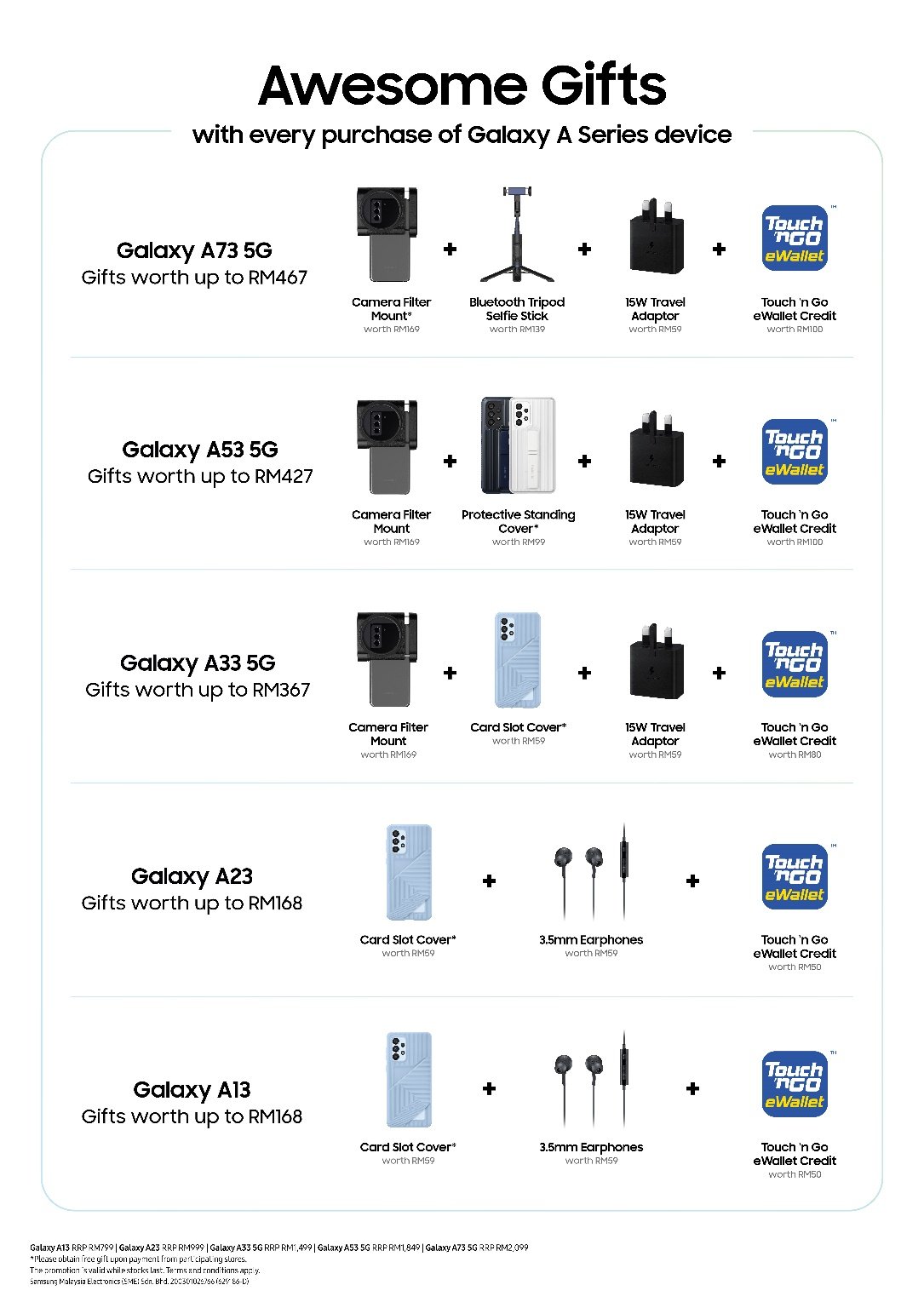 Sekiranya anda tidak tahu, Samsung sedang mengadakan Roadshow untuk barisan telefon pintar peringkat permulaan mereka yang hebat: Siri Galaxy A seperti Galaxy A13, Galaxy A23, Galaxy A33 5G, Galaxy A53 5G dan Galaxy A73 5G. Jika anda minat peranti ini, inilah masa untuk hadirkan diri ke Roadshow Galaxy A Awesome Samsung! dan membawa pulang rebat sehingga RM100 dalam bentuk kredit Touch ‘n Go berdasarkan model yang anda beli. Selain itu, terdapat hadiah percuma yang menarik dan lebih banyak tawaran untuk anda miliki!