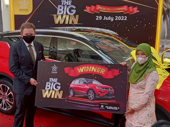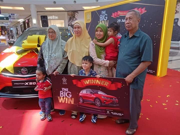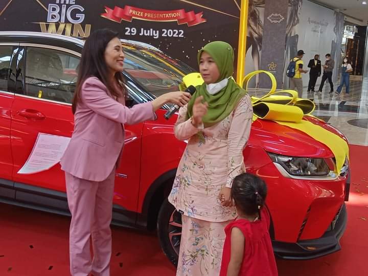 PUTRAJAYA, 29 Julai 2022 – “Tuah ayam nampak di kaki, tuah manusia tiada siapa yang tahu”. Berikutan pepatah melayu yang sinonim dengan tuah pemenang hadiah utama kempen cabutan bertuah “The Big Win” yang berlangsung di Pusat Beli-Belah Alamanda. Majlis penyerahan hadiah utama yang merupakan sebuah “Proton X50 Flagship” kepada pemenang Rabiatul Afiqah Mohd Rahim itu disaksikan oleh para media serta para pengunjung lain yang menyambut kemenangan beliau dengan ucapan tahniah.