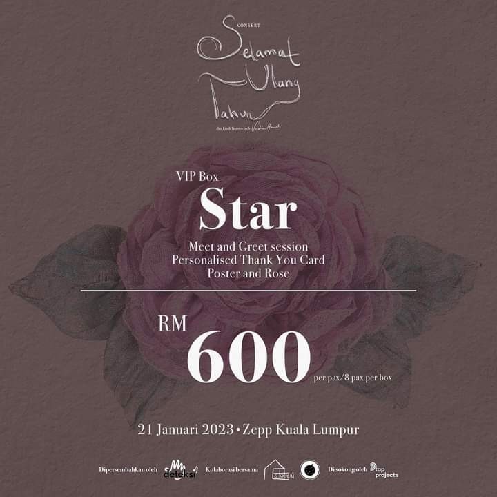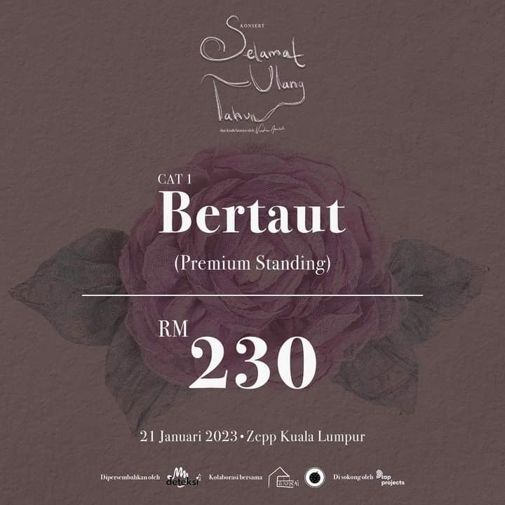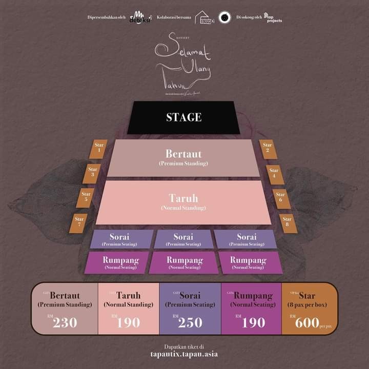 Kesemua tiket boleh dibeli di www.tapautix.tapau.asia dan kepada penggemar jangan sia siakan pertemuan perdana pada 21 Januari 2023 yang akan membuat kalian pulang dengan seribu kenangan.
