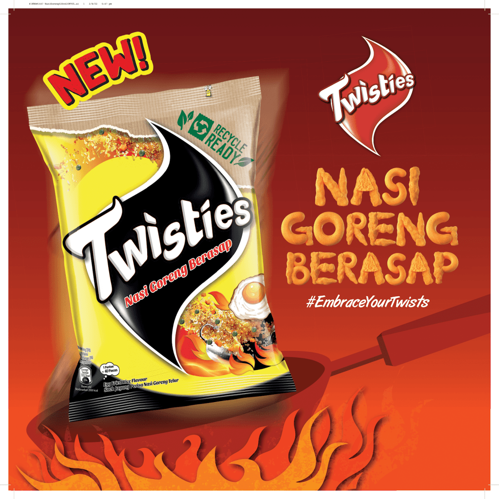 “Twisties is committed to our brand purpose of introducing fresh twists to our beloved product line-up. With the introduction of Twisties Nasi Goreng Berasap flavour, Malaysians can now enjoy the authentic and delicious flavours of their favourite meal instantly and even on the go! The campaign message in #EmbraceYourGoreng is synonymous with our brand message of being able to celebrate the uniqueness in your own way. It invites Malaysians to ‘goreng’ yourselves out of everyday sticky situations driven by each individual’s personality and creativity,” said Zaid Areff, Senior Marketing Manager, Mondelēz Malaysia & Singapore.