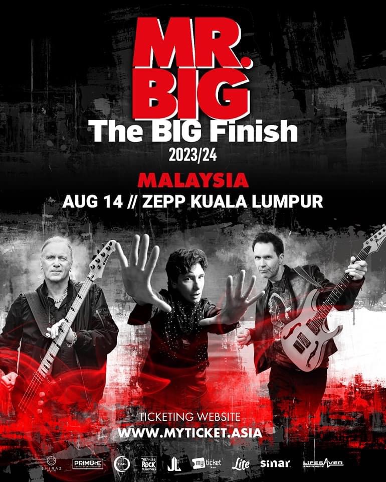 Kumpulan rock popular Amerika, Mr. Big akan membuat persembahan dalam jelajah akhir mereka ke seluruh dunia yang dinamakan “The BIG Finish”. Kumpulan yang ditubuhkan pada 1988 ini terkenal dengan lagu-lagu hits “To Be With You”, “Just Take My Heart” dan “Wild World”. Mereka telah memulakan lawatan ke seluruh dunia mereka mulai Jepun pada 20 Julai 2023 lalu. Shiraz Projects berbesar hati untuk membawa Mr. Big ke Kuala Lumpur pada 14 Ogos 2023, sebagai persinggahan terakhir dalam rangkaian Asia “The BIG Finish” mereka.