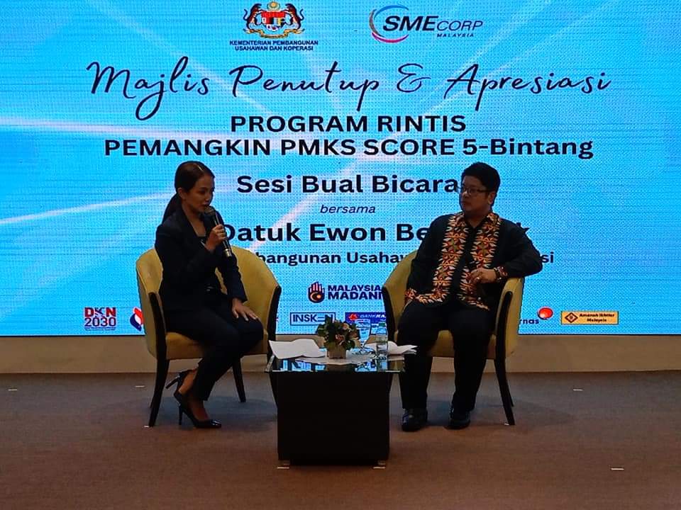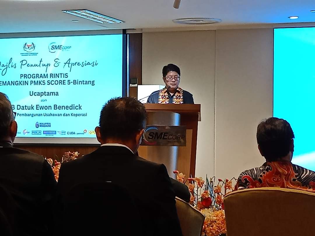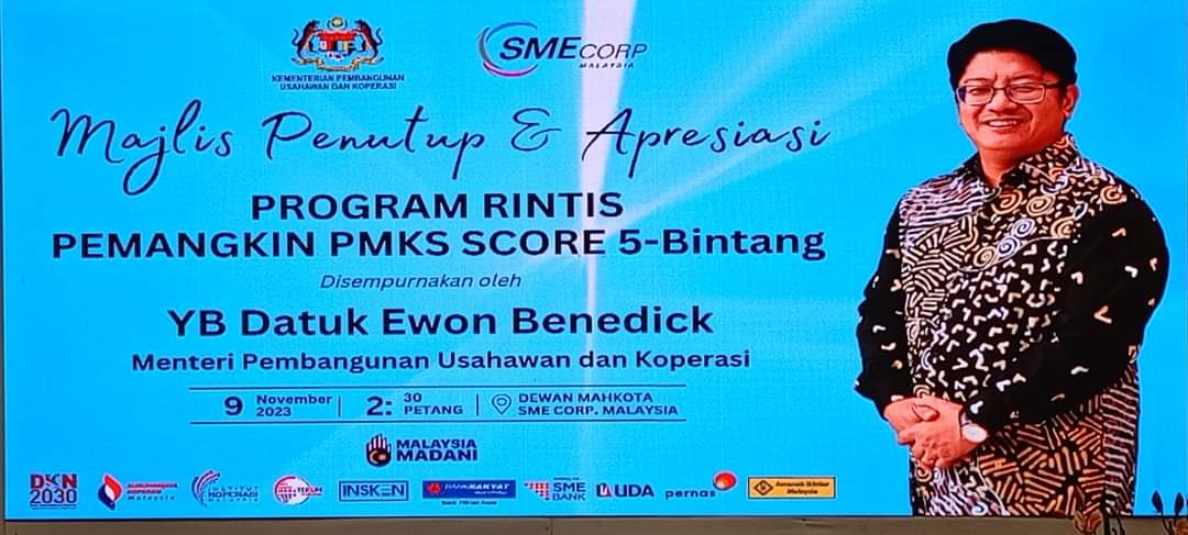 KUALA LUMPUR, 9 November 2023 – Sebanyak 48 Perusahaan Mikro, Kecil dan Sederhana (PMKS) bertaraf 4–5 bintang di bawah Program Penarafan Daya Saing PMKS bagi Peningkatan (SCORE) telah dibimbing melalui Program Rintis Pemangkin PMKS SCORE 5 Bintang yang dilaksanakan oleh SME Corp. Malaysia, agensi di bawah Kementerian Pembangunan Usahawan dan Koperasi (KUSKOP). Penyerahan sijil penghargaan kepada PMKS tersebut telah disempurnakan oleh YB Datuk Ewon Benedick, Menteri Pembangunan Usahawan dan Koperasi, hari ini.Program Rintis Pemangkin PMKS SCORE 5 Bintang bertujuan menggalakkan PMKS menyenaraikan syarikat di Bursa Malaysia dan seterusnya meningkatkan modal dan profil mereka dalam pasaran domestik dan antarabangsa melalui sokongan bersepadu. Selain itu, program ini turut membantu PMKS untuk menerokai pasaran eksport menerusi sesi padanan perniagaan bersama Trade Linker yang berpengalaman dalam aktiviti eksport. Pemilihan peserta dibuat dari kalangan PMKS bertaraf 4–5 bintang di bawah SCORE sebagai kesinambungan kepada program tersebut.