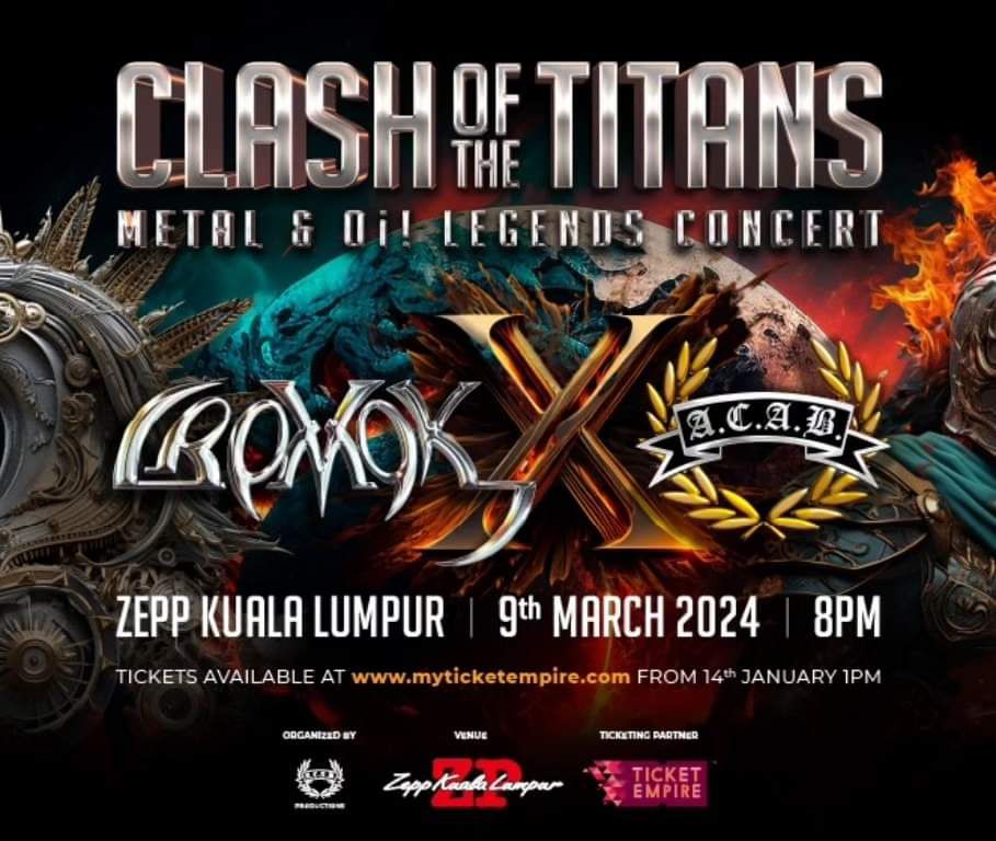 Zepp Kuala Lumpur akan menjadi saksi kepada pertembungan dua legenda muzik underground tempatan, A.C.A.B dan Cromok, pada 9 Mac 2024. Konsert bertajuk Clash of the Titans ini akan menyatukan dua aliran muzik yang berbeza, Oi! dan Thrash Metal, dalam satu persembahan yang menarik dan unik.