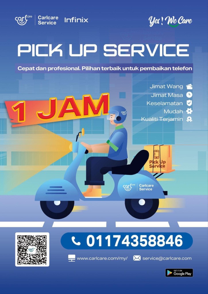Infinix bekerjasama dengan CarlCare untuk menyediakan perkhidmatan membaiki telefon bagi pengguna yang memerlukan. Selain itu, Infinix memperkenalkan perkhidmatan ‘Pick-Up Service’, membolehkan pengguna mengumpulkan peranti mereka dalam masa satu jam. Inisiatif ini bertujuan untuk menjimatkan masa dan wang pengguna sambil memastikan keselamatan peranti mereka. Pengguna boleh imbas Kod QR dalam imej yang disediakan atau hubungi 011 7435 8846 untuk maklumat lanjut.