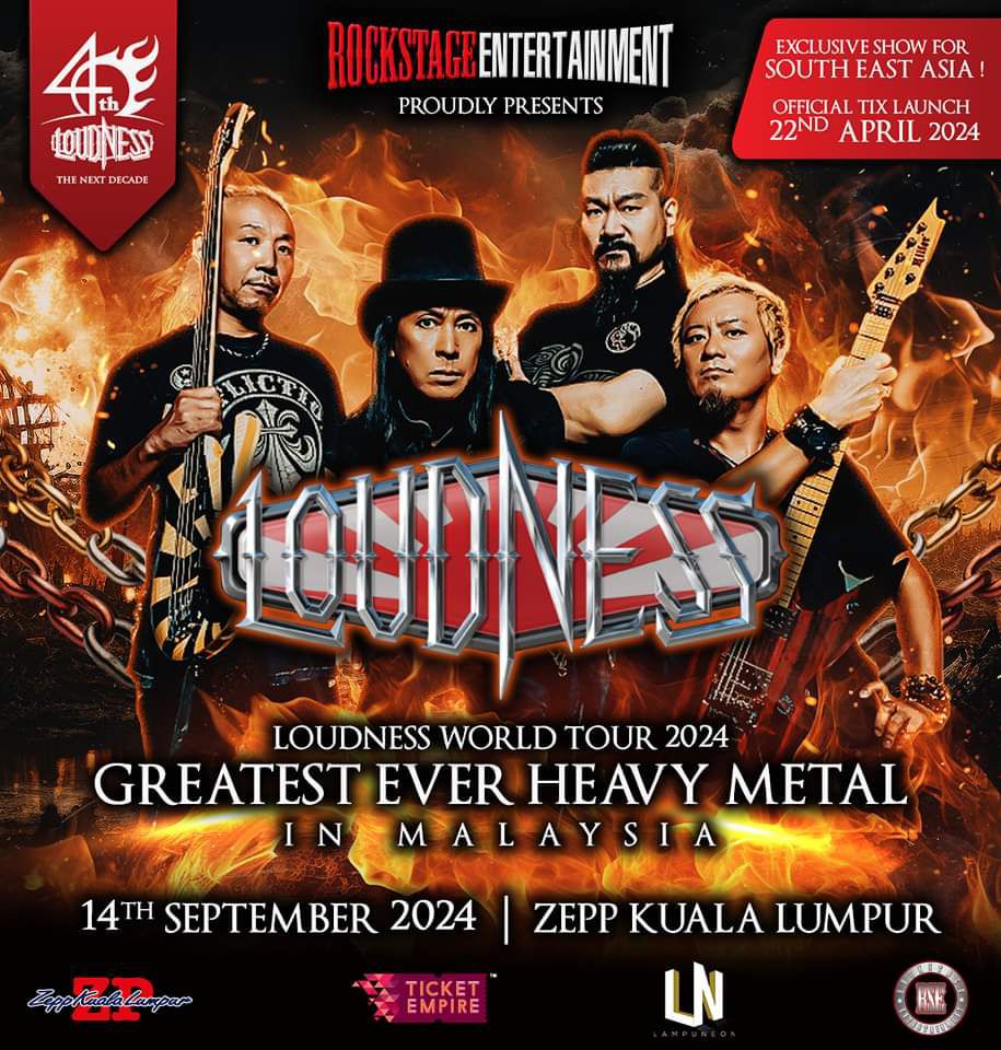 Band heavy metal legenda, Loudness, akan menggegarkan pentas di Zepp KL dalam rangkaian konsert World Tour 2024. Ini merupakan satu-satunya persembahan mereka di Asia Tenggara, dan peminat muzik di Malaysia pasti tidak mahu terlepas peluang untuk menyaksikan persembahan ikonik dari band yang telah mengukir sejarah dalam industri muzik ini.
