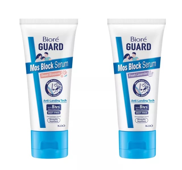 Bioré GUARD Mos Block Serum terbaru adalah penolak nyamuk berdasarkan teknologi penolak yang menjadikan permukaan kulit tidak menyenangkan untuk nyamuk. Dengan fokus pada tindakan nyamuk apabila mereka mendarat di kulit, KAO telah mengembangkan penolak nyamuk yang tidak melekit dengan tekstur ringan seperti losyen badan yang boleh diperluaskan dengan meluas dan menyediakan liputan pada kulit, seolah-olah mempunyai perisai perlindungan kulit untuk melindungi daripada nyamuk.