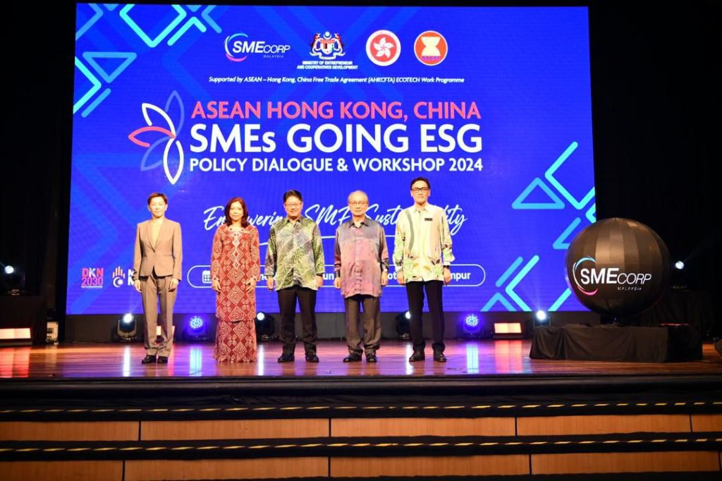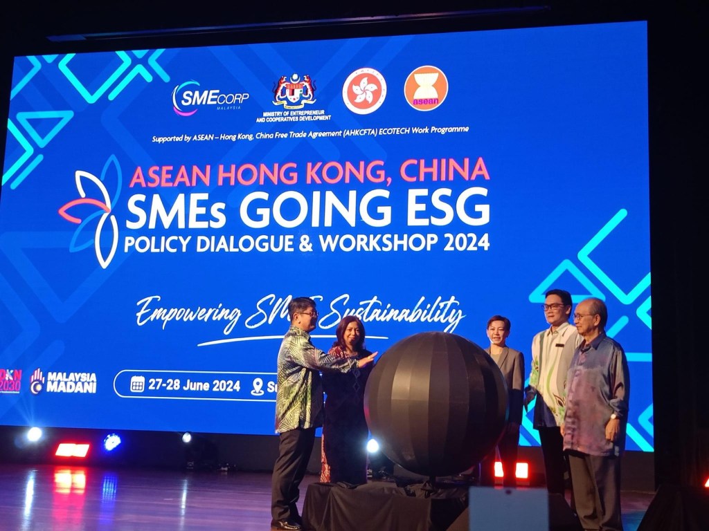 27 Jun 2024 – SME Corp. Malaysia baru-baru ini telah menganjurkan acara ASEAN Hong Kong, China (AHKC) SMEs Going ESG Policy Dialogue and Workshop 2024 yang melibatkan lebih daripada 300 peserta dari Perusahaan Kecil dan Sederhana (PKS) tempatan, negara anggota ASEAN, dan Hong Kong, China. Tujuannya adalah untuk memperkukuhkan kesedaran tentang amalan Alam Sekitar, Sosial, dan Tadbir Urus (ESG) serta berkongsi amalan terbaik mengenai kelestarian dalam kalangan negara ASEAN. Acara ini bertemakan “Memperkasa Kelestarian PKS” dan dihadiri oleh pegawai kerajaan, pakar ESG, pemilik PKS, wakil daripada institusi kewangan, dan ahli akademik.