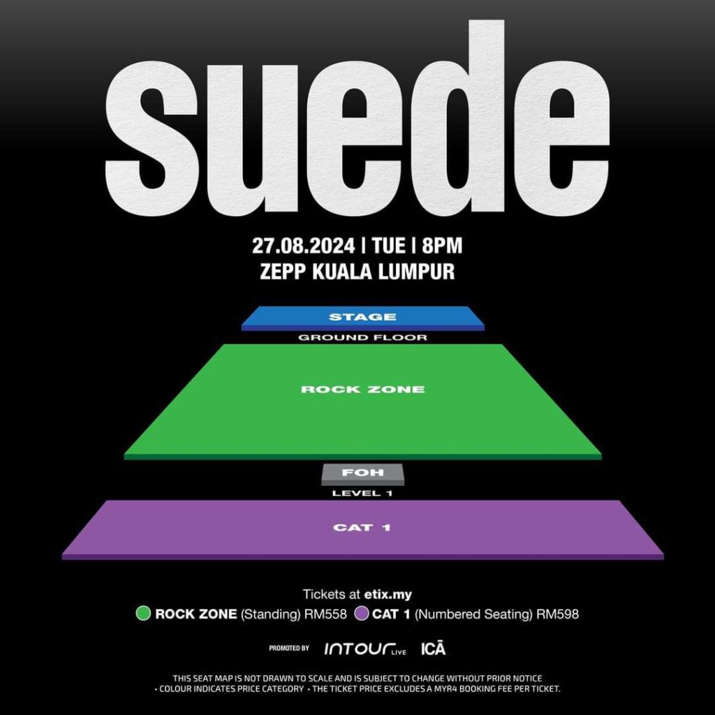 - Untuk maklumat lanjut mengenai tiket dan tempahan, layari Suede Live di Kuala Lumpur 2024.