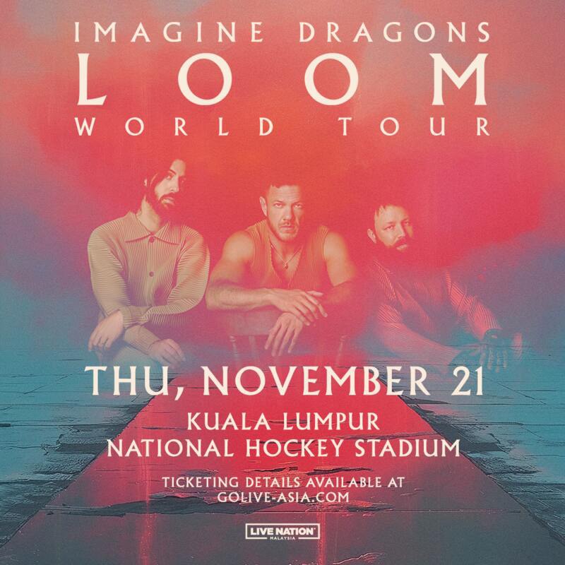 KUALA LUMPUR, 5 Ogos 2024 – Live Nation Malaysia dengan sukacitanya mengumumkan bahawa Imagine Dragons akan memulakan jelajah utama Asia mereka pada November hingga Disember 2024 sebagai sebahagian daripada Loom World Tour mereka. Konsert pembukaan jelajah ini akan berlangsung di Kuala Lumpur pada 21 November 2024 di Stadium Hoki Nasional, menandakan kemunculan pertama mereka di Malaysia dalam rangka lawatan ini.