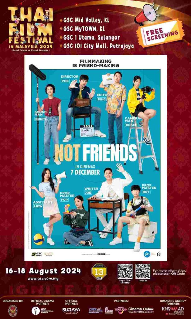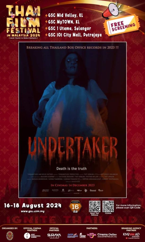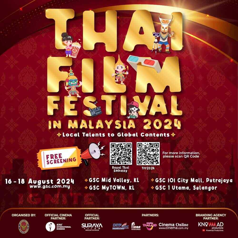 Majlis perasmian TFF 2024 akan diadakan pada 13 Ogos 2024 di Aurum Theatre, The Exchange TRX, Kuala Lumpur, dan akan disertai dengan tayangan khas filem “The Undertaker”, sebuah filem komedi-seram yang mendapat perhatian istimewa di kalangan penonton Malaysia. Selain itu, festival ini juga akan menampilkan lima filem Thai terpilih, termasuk “Not Friends” (komedi-drama remaja), “Daeng” (komedi-seram), “Haunted Tales” (seram), dan “Mantra Warrior: The Legend of The Eight Moons” (animasi). Tayangan-tayangan ini akan diadakan di beberapa pawagam Golden Screen Cinemas (GSC) terpilih di Kuala Lumpur, Putrajaya, dan Selangor, termasuk GSC Mid Valley, GSC 1 Utama, GSC MyTown, dan GSC IOI City Mall. Sebanyak 20 tayangan percuma akan disediakan untuk orang ramai.