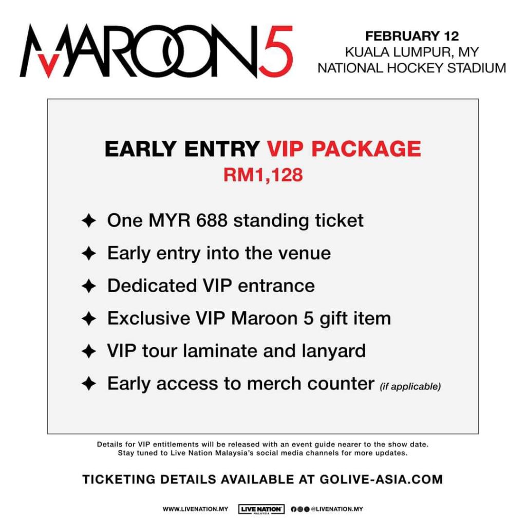 Maklumat lanjut mengenai konsert dan penjualan tiket boleh didapati di maroon5.com dan livenation.asia.