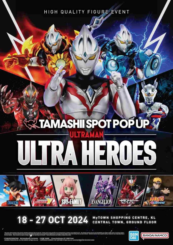 Kuala Lumpur, 18 Oktober 2024 – Acara TAMASHII SPOT POP UP X ULTRA HEROES 2024 kini berlangsung di Pusat Beli-Belah MyTOWN dari 18 hingga 27 Oktober. Acara ini menawarkan pengalaman unik buat peminat siri Ultraman dan kolektor figura aksi.