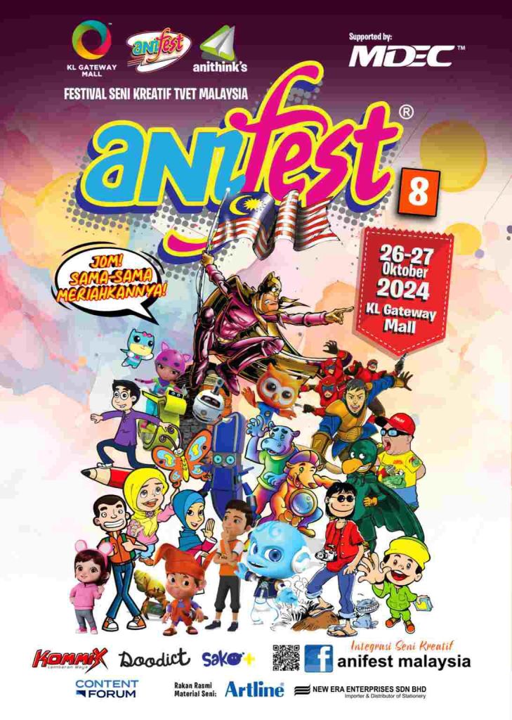 KUALA LUMPUR, 26 Oktober 2024 – Festival Animasi dan Komik, Anifest 2024 kembali dengan edisi kelapan pada 26 dan 27 Oktober di KL Gateway Mall, Bangsar South, Kuala Lumpur. Festival ini menampilkan pelbagai aktiviti menarik yang dijangka menarik ribuan pengunjung dari pelbagai latar belakang seni dan budaya.