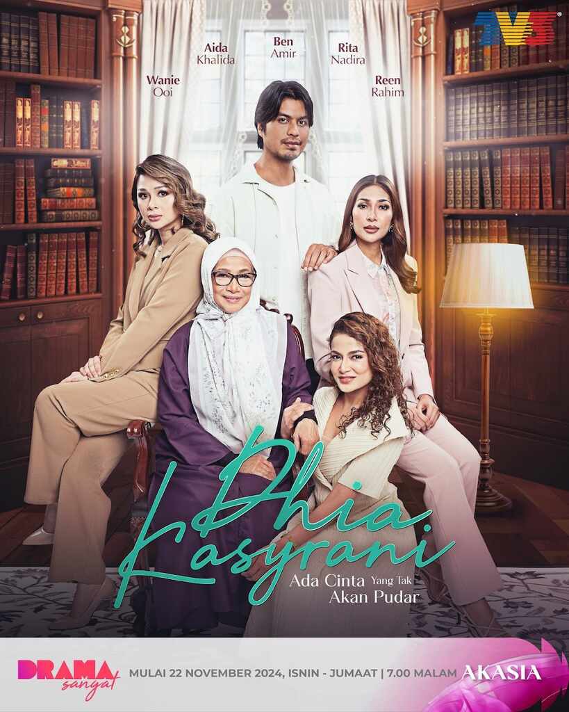 Sebuah drama bersiri terbaru yang akan menguji ego dan kesombongan dalam mempertahankan cinta antara dua individu, Dhia Kasyrani, bakal menghangatkan slot Akasia TV3 bermula 22 November ini. Drama yang penuh dengan konflik dan drama ini akan ditayangkan selama 24 episod, setiap Isnin hingga Jumaat, jam 7.00 malam. Ia juga boleh ditonton di platform penstriman iQIYI satu jam selepas siaran di TV3.