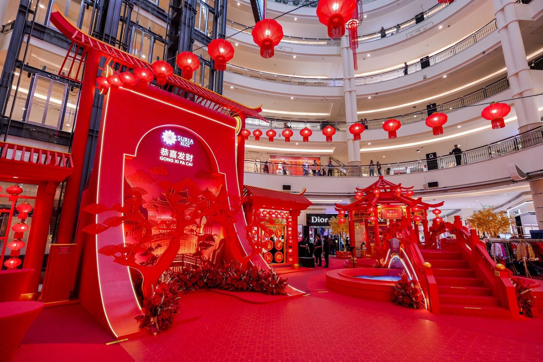 Sempena Tahun Baru Cina 2025, Suria KLCC menampilkan tema Taman Cina kontemporari dari 3 Januari hingga 9 Februari. Hiasan utama di Centre Court merangkumi motif seni potongan kertas, pagoda, jambatan digital dengan kolam koi interaktif, serta Pohon Emas Kemakmuran yang melambangkan kesejahteraan. Di Esplanade KLCC, pengunjung disambut oleh gerbang agung Cina dan menara dihiasi tanglung merah yang mencipta laluan visual menarik.