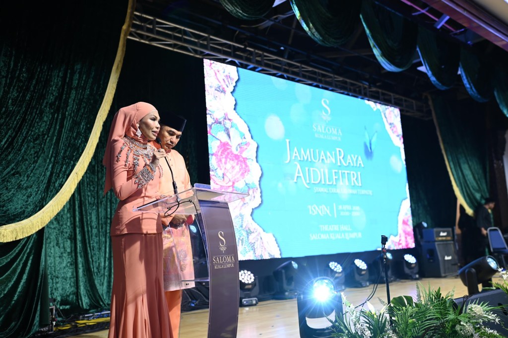 Majlis yang berlangsung di Theatre Hall, Saloma Kuala Lumpur bukan sahaja menjadi medan meraikan Syawal, malah menyaksikan simbol penghargaan terhadap legasi seni Allahyarhamah Saloma apabila gratuiti disampaikan kepada cucu-cucunya, Arzanee Armalie dan Rozaidie Armalie.