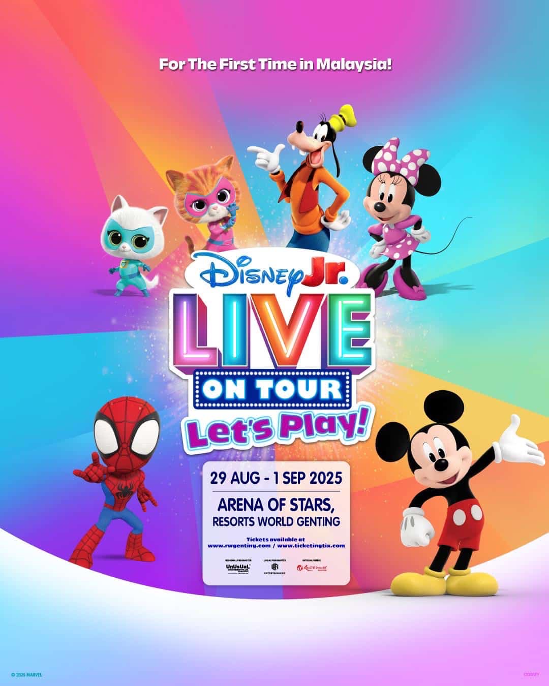 KUALA LUMPUR, 10 Jun 2025 – Penggemar cilik Disney dan seisi keluarga dijemput untuk menyertai pengalaman muzikal interaktif yang penuh keajaiban apabila Disney Jr. Live On Tour: Let’s Play! bakal dipentaskan di Arena of Stars, Resorts World Genting selama empat hari, dari 29 Ogos hingga 1 September 2025.