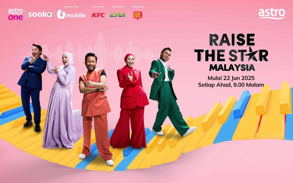 ‘Raise The Star Malaysia’ akan bersiaran selama lapan minggu bermula 22 Jun 2025, setiap Ahad jam 9 malam secara langsung dari Royal Theatre Shah Alam di saluran Astro Ria (104), dan turut boleh distrim melalui Astro GO dan sooka.