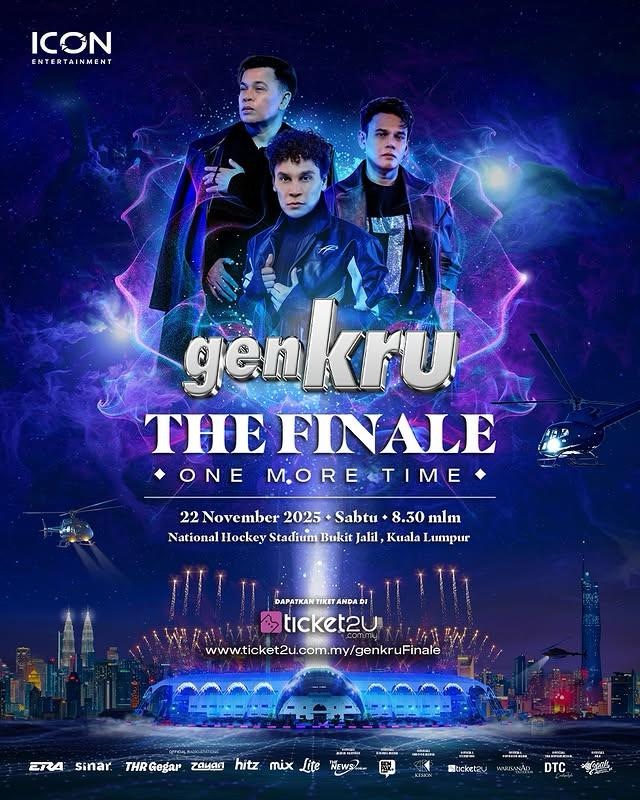 KUALA LUMPUR – Selepas kejayaan luar biasa empat malam Konsert GenKRU di Axiata Arena, Bukit Jalil, serta satu malam persembahan di Singapura beberapa bulan lalu, kumpulan legenda KRU bakal kembali menggegarkan pentas menerusi Konsert GenKRU The Finale: One More Time. Konsert anjuran ICON Entertainment itu dijadualkan berlangsung pada 22 November 2025, pukul 8.30 malam di Stadium Hoki Nasional Bukit Jalil, sekali gus menjadi pentas perpisahan paling epik bagi meraikan lebih tiga dekad perjalanan muzik trio beradik tersebut.