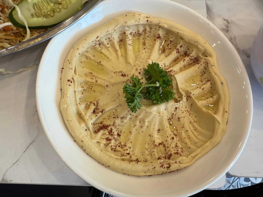 Selain hidangan nasi, kami turut dihidangkan seleksi grilled dishes seperti Chicken Kebab, Lamb Kebab dan Shish Tawook — semuanya diperap sempurna dan dibakar dengan teknik yang mengekalkan kelembutan isi daging sambil menghasilkan aroma bakaran yang menggoda. Hidangan pembuka seperti Hummus dan Mutabbal pula menjadi pelengkap sempurna; tekstur lembut, rasa berkrim dengan sedikit masam limau dan minyak zaitun yang segar. Arabic Salad dan Fattoush memberi sentuhan seimbang, menyegarkan semula deria selepas hidangan berat.