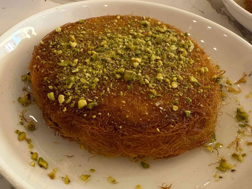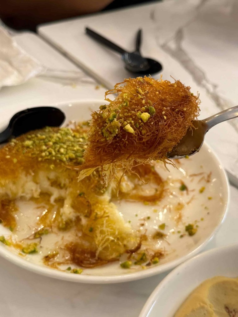 Kemuncak pengalaman di Palestinian Chef Kitchen pastinya terletak pada pencuci mulut. Cheese Kunafa dengan tambahan Pistachio Paste dan Chocolate Topping hadir dalam dua saiz, kecil dan besar. Lapisan pastri halusnya garing di luar tetapi lembut di dalam, manakala keju cair di tengah memberikan sensasi yang kaya dan memanjakan lidah. Ia diakhiri dengan siraman sirap wangi yang menambah manis seadanya, tidak berlebihan.